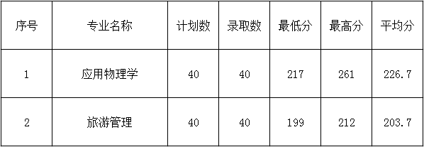 序號(hào) | 專(zhuān)業(yè)名稱(chēng) | 計(jì)劃數(shù) | 錄取數(shù) | 最低分 | 最高分 | 平均分 |