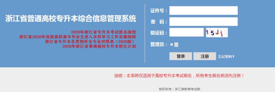 1、考生登錄浙江專升本報(bào)名系統(tǒng),用本人身份證注冊(cè)賬號(hào)!