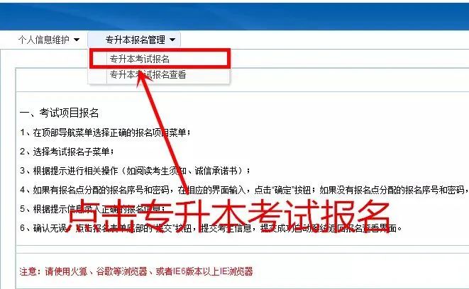 2、進(jìn)入專升本報(bào)名管理,進(jìn)行報(bào)名!