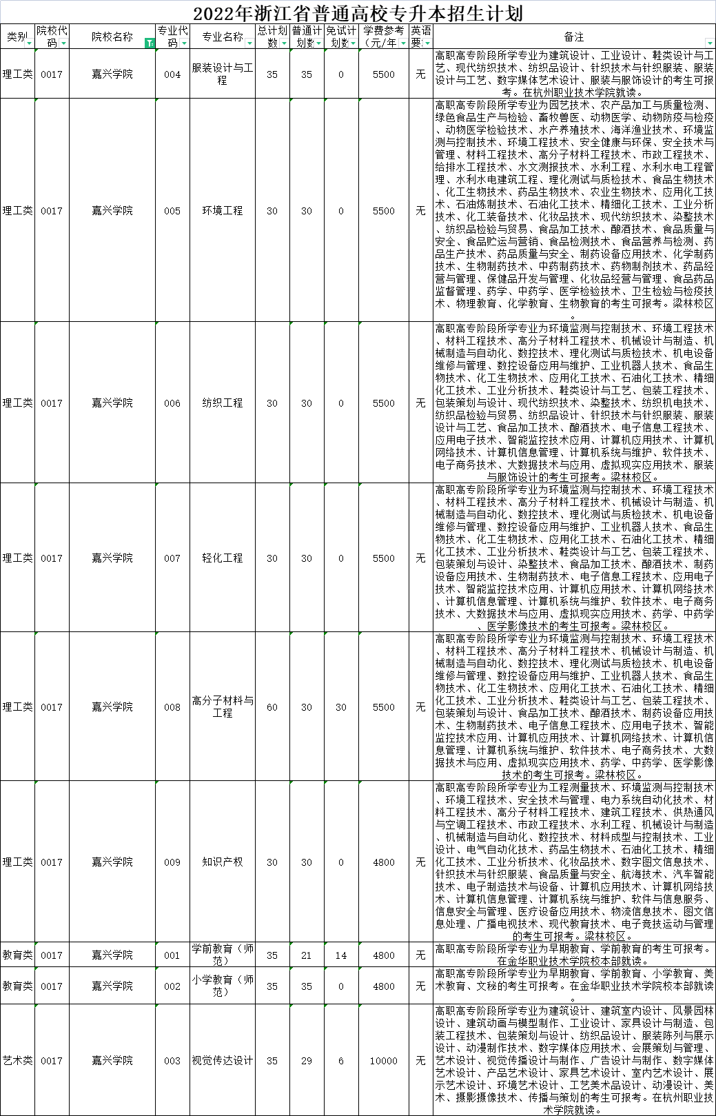 | 理工類 | 0006 | 杭州電子科技大學 | 005 | 電氣工程及其自動化 | 75 | 60 | 15 | 6000 | 無 | 高職高專階段所學專業為發電廠及電力系統、供用電技術、電力系統自動化技術、高壓輸配電線路施工運行與維護、電廠熱能動力裝置、風力發電工程技術、建筑電氣工程技術、建筑智能化工程技術、電機與電器技術、機電設備維修與管理、光電制造與應用技術、機電一體化技術、電氣自動化技術、工業過程自動化技術、智能控制技術、工業機器人技術、船舶電氣工程技術、船舶電子電氣技術、電子信息工程技術、應用電子技術、電子制造技術與設備、電子測量技術與儀器、光伏工程技術、物聯網應用技術的考生可報考。在金華職業技術學院校本部就讀。 |
