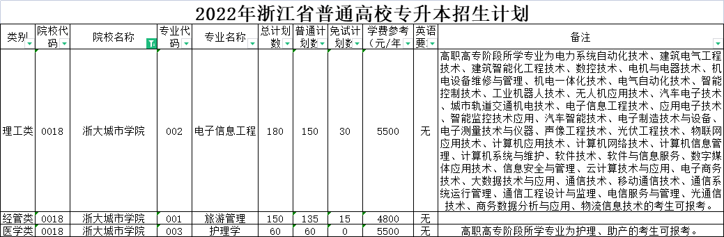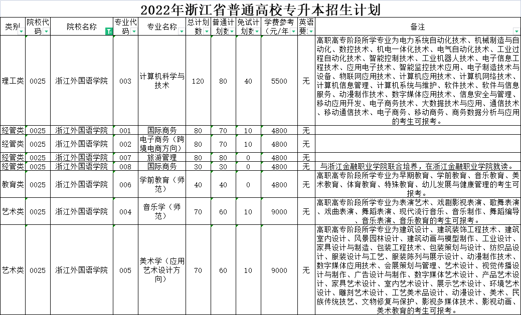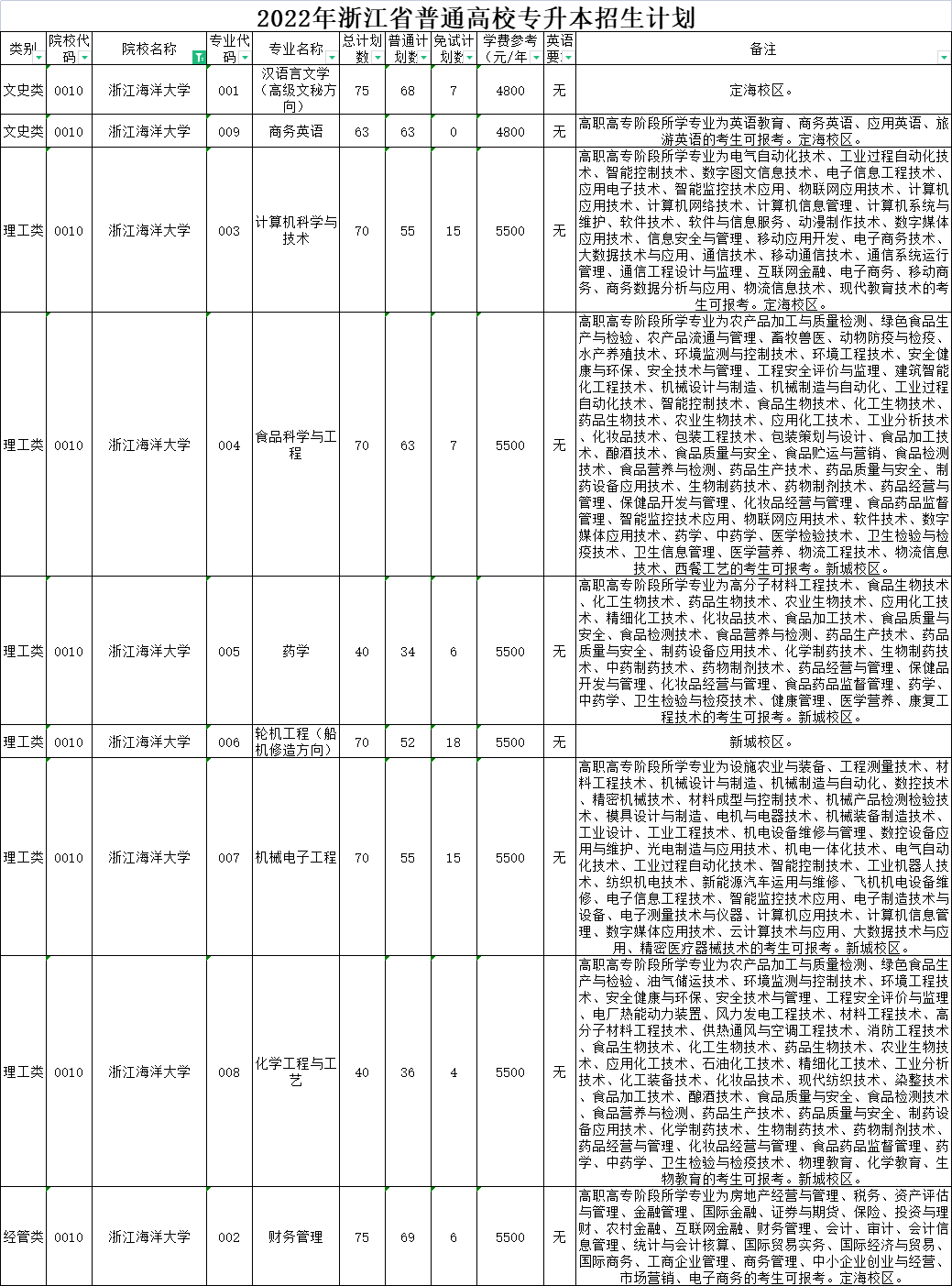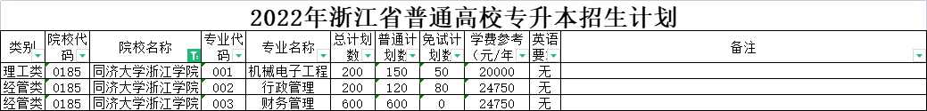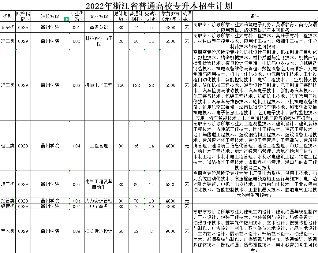| 經管類 | 0006 | 杭州電子科技大學 | 007 | 電子商務 | 50 | 50 | 0 | 5300 | 無 | 在浙江商業職業技術學院就讀。 |