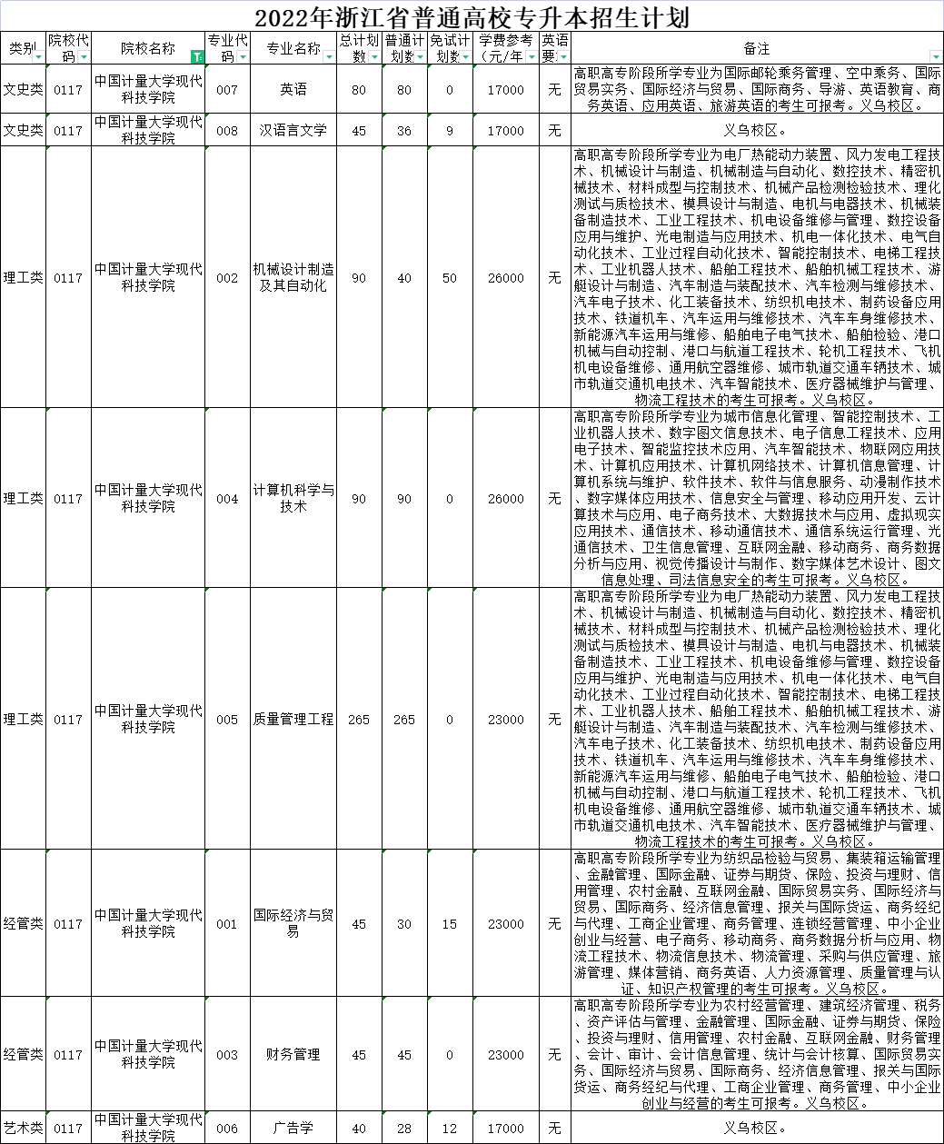 | 經管類 | 0006 | 杭州電子科技大學 | 010 | 國際經濟與貿易 | 45 | 35 | 10 | 5300 | 無 | 在浙江經濟職業技術學院就讀。 |